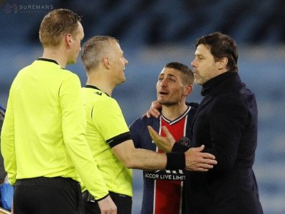 심판에게 항의하는 마르코 베라티.로이터연합뉴스[스포츠서울 정다워기자] 파리생제르맹(PSG)의 미드필더 마르코 베라티가 심판에게 욕설을 들었다는 폭로를 했다.베라티는 5일(한국시간) 영국 맨체스터의 에티하드 스타디움에서 열린 맨체스터 시티와의 2020~2021 유럽축구연맹(UEFA) 챔피언스리그 준결승 2차전 종료 후 인터뷰에서 “심판이 나에게 FXXX YO…