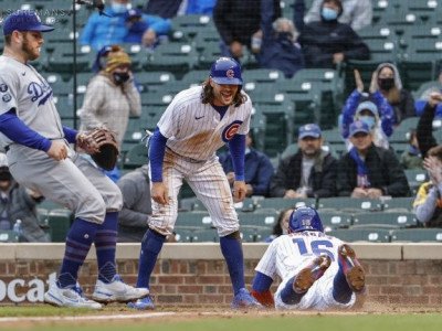 5일(한국 시간) 리글리필드에서 벌어진 시카고 컵스전에서 3회 폭투로 득점을 올리고 있다. 홈플레이트 커버에 들어간 맥스 먼시(왼쪽). USA TODAY Sports연합뉴스[LA=스포츠서울 문상열전문기자] 타율 0.207, 출루율 0.420.같은 타자의 기록이다. 타율과출루율의 차이가 무려 0.213이다. 야구에서는 좀처럼 보기드문 기록의 조합이다. 한 타…
