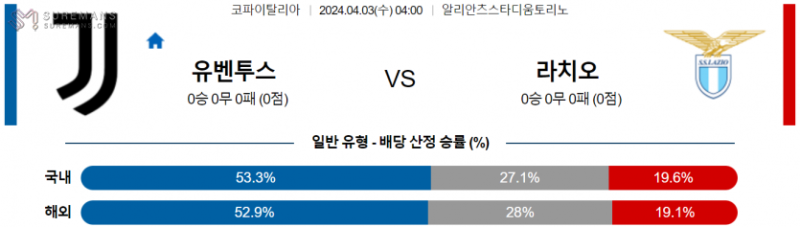 코파 이탈리아 4월 3일 04:00 유벤투스 : SS 라치오