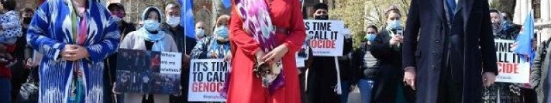 영국 보수당 의원 이언 던컨 스미스(오른쪽)와 누스 가니(가운데)가 지난달 22일(현지시간) 런던에서 영국 의회가 중국 신장위구르 자치구의 위구르족 인권 탄압을 '집단 학살'(ge…