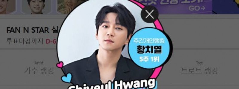 '팬앤스타' 3월 넷째 주 개인랭킹 투표에서 161만 4196표 득표지난 28일 가수 황치열이 '팬앤스타' 개인랭킹 1위에 올랐다. /팬앤스타[더팩트 | 이나래 기자] 가수 황치열이 '보정이 필요없는 완벽한 비주얼을 가진 스타' 1위에 올랐다.주간 아이돌 랭킹사이트 '팬앤스타'에서는 매주 다양한 주제의 개인랭킹 투표를 진행하고 있다. 3월 넷째 주 개인랭킹…
