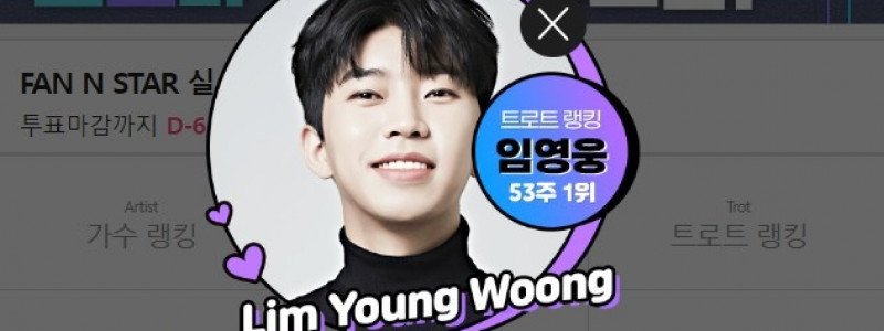 임영웅, '팬앤스타' 트로트 랭킹 53주 연속 1위