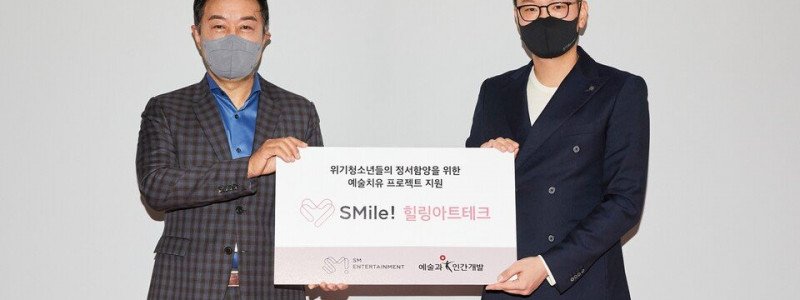 SM엔터테인먼트가 새로운 사회공헌 활동 전개를 위해 사단법인 '예술과 인간개발'과 업무 협약(MOU)을 맺었다.SM엔터테인먼트(이하 SM)과 '예술과 인간개발'은 10일 오전 SM 성수 신사옥에서 이성수·탁영준 SM 공동대표, 양재현 '예술과 인간개발' 이사장 등이 참석한 가운데 업무 협약을 맺고, 위기 청소년의 정서적 안정과 회복을 돕기 위한 통합예술치유…