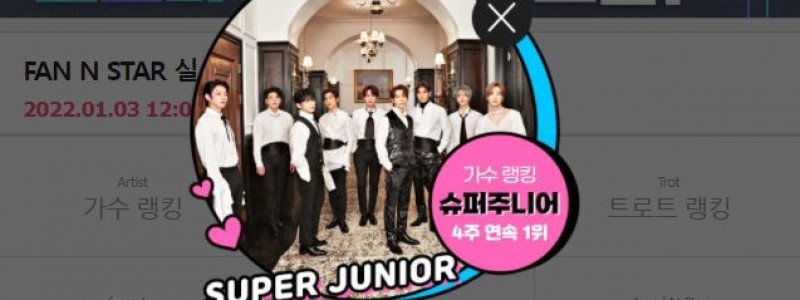 슈퍼주니어, '팬앤스타' 가수 랭킹 4주 연속 1위